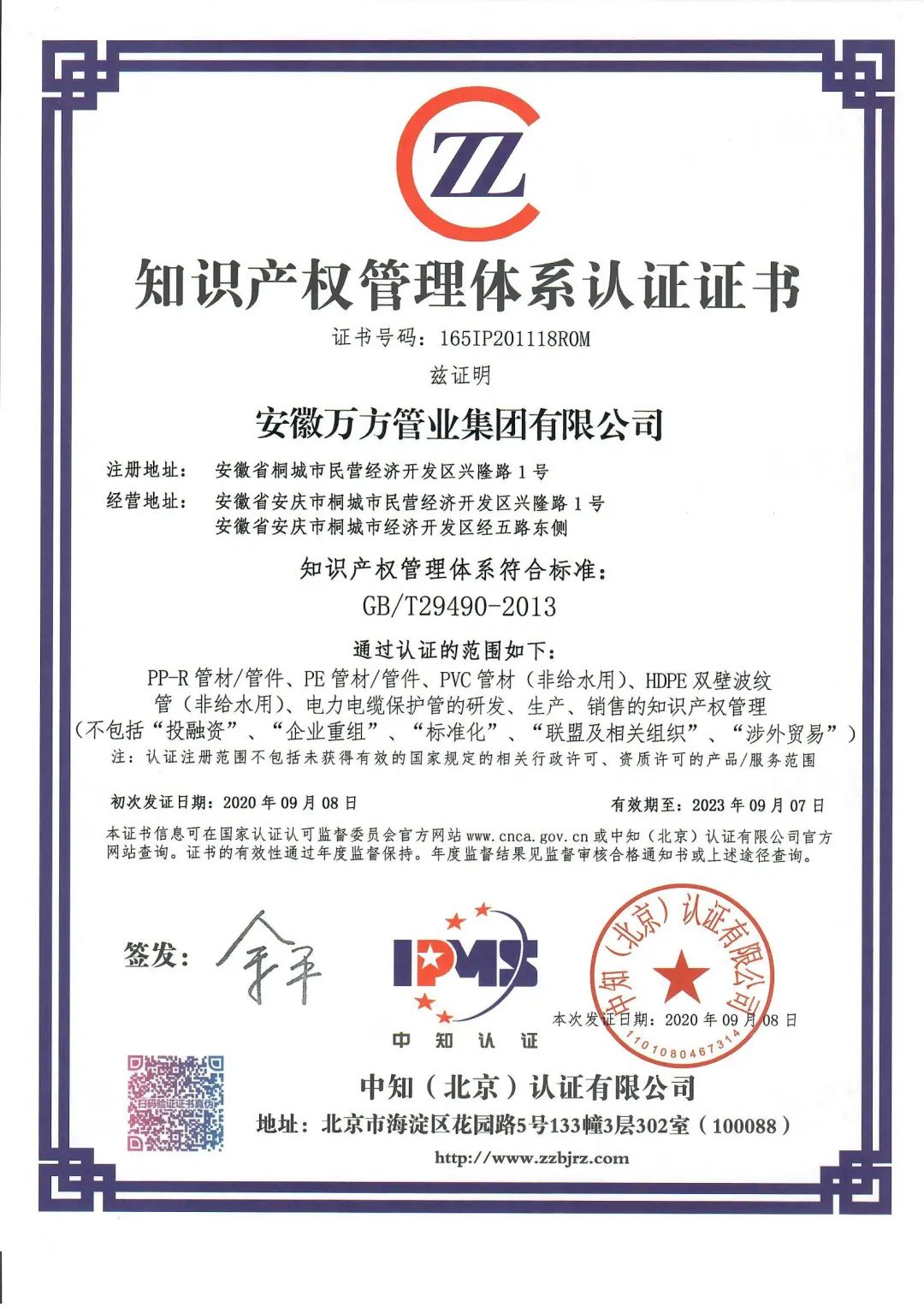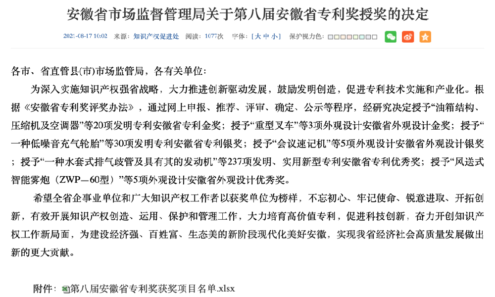 近年來(lái),安徽萬(wàn)方集團(tuán)高度重視專利培育,優(yōu)化專利考核與激勵(lì)機(jī)制,不斷完善專利管理體系,于2020年通過(guò)知識(shí)產(chǎn)權(quán)管理體系認(rèn)證,2021年截止目前新增專利三項(xiàng)。