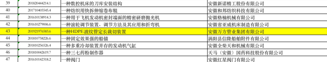 8月16日,安徽省第八屆專利獎(jiǎng)評(píng)選結(jié)果揭曉,經(jīng)網(wǎng)上申報(bào)、推薦、專家評(píng)審、審核確定、公示等評(píng)審程序,安徽萬(wàn)方管業(yè)集團(tuán)有限公司的實(shí)用新型專利“一種HDPE波紋管定長(zhǎng)裁切裝置”(專利號(hào):ZL 2019 2 1976583.6)榮獲專利優(yōu)秀獎(jiǎng)。此次獲獎(jiǎng)是對(duì)萬(wàn)方管業(yè)研發(fā)和創(chuàng)新能力的高度認(rèn)可,同時(shí)也鼓舞了公司繼續(xù)進(jìn)行技術(shù)鉆研的信心。